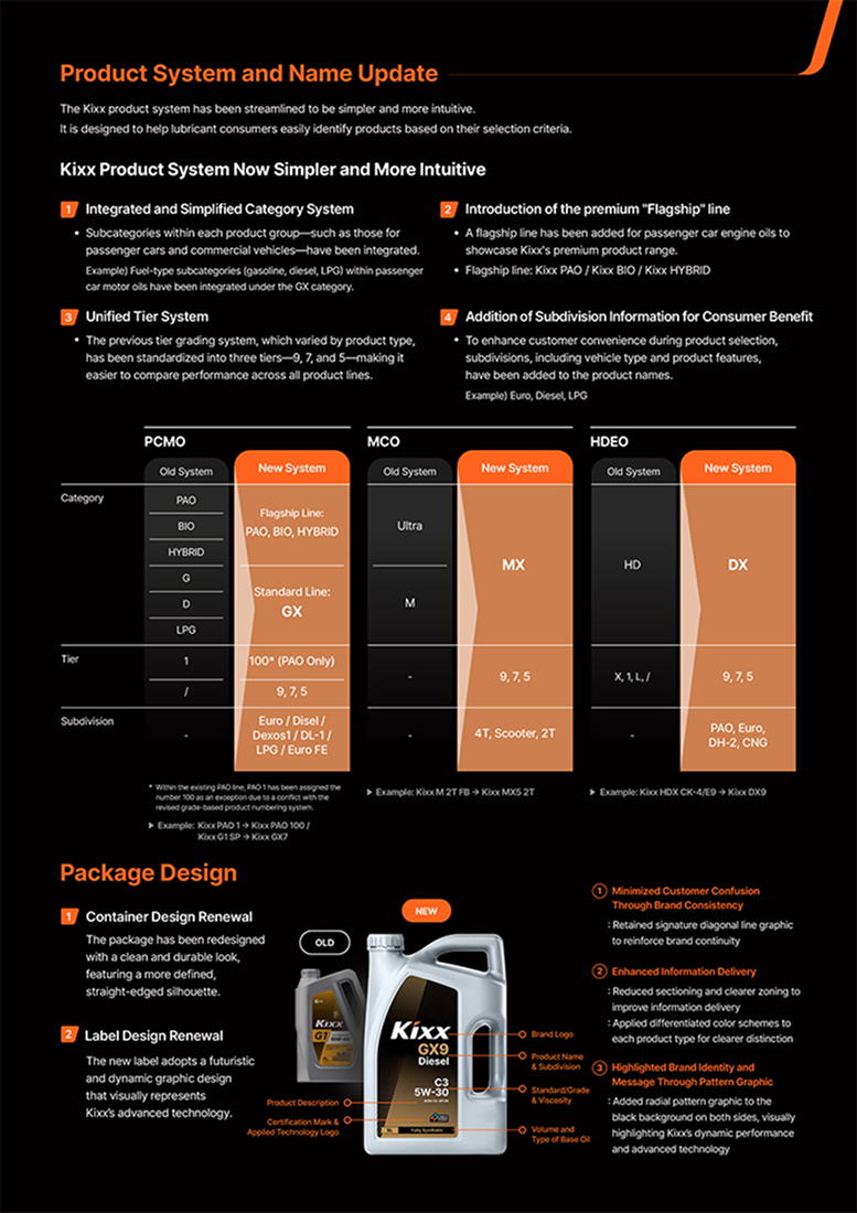 Through its 2025 brand renewal, Kixx reorganized many of its core brand elements, including the brand identity, slogan, product system and more. As a particular point of focus, the product system and naming categorization were simplified and made more intuitive, to increase customer understanding as well as the convenience of product selection and purchase. Additionally, the product packaging was also redesigned to feature the new logo and brand image. This is where the new leaflets come in— bringing these updated elements together in a single, cohesive reference that can be quickly consulted and easily explained.